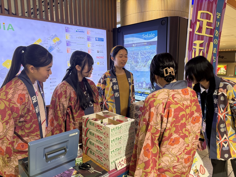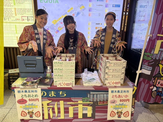足利市は、足利市産のイチゴの販売と足利市の観光パンフレットの配布をしました✨