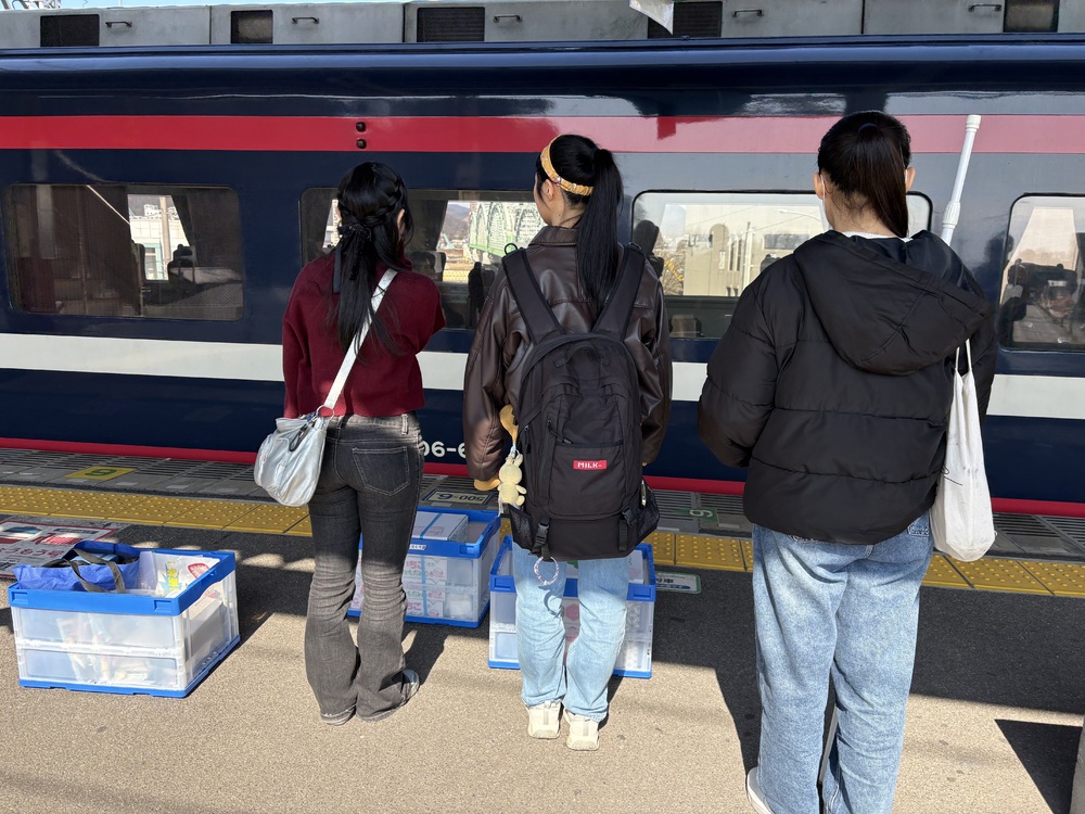 32パック分のイチゴを足利市駅から運び、特急りょうもう号に乗り北千住駅へ